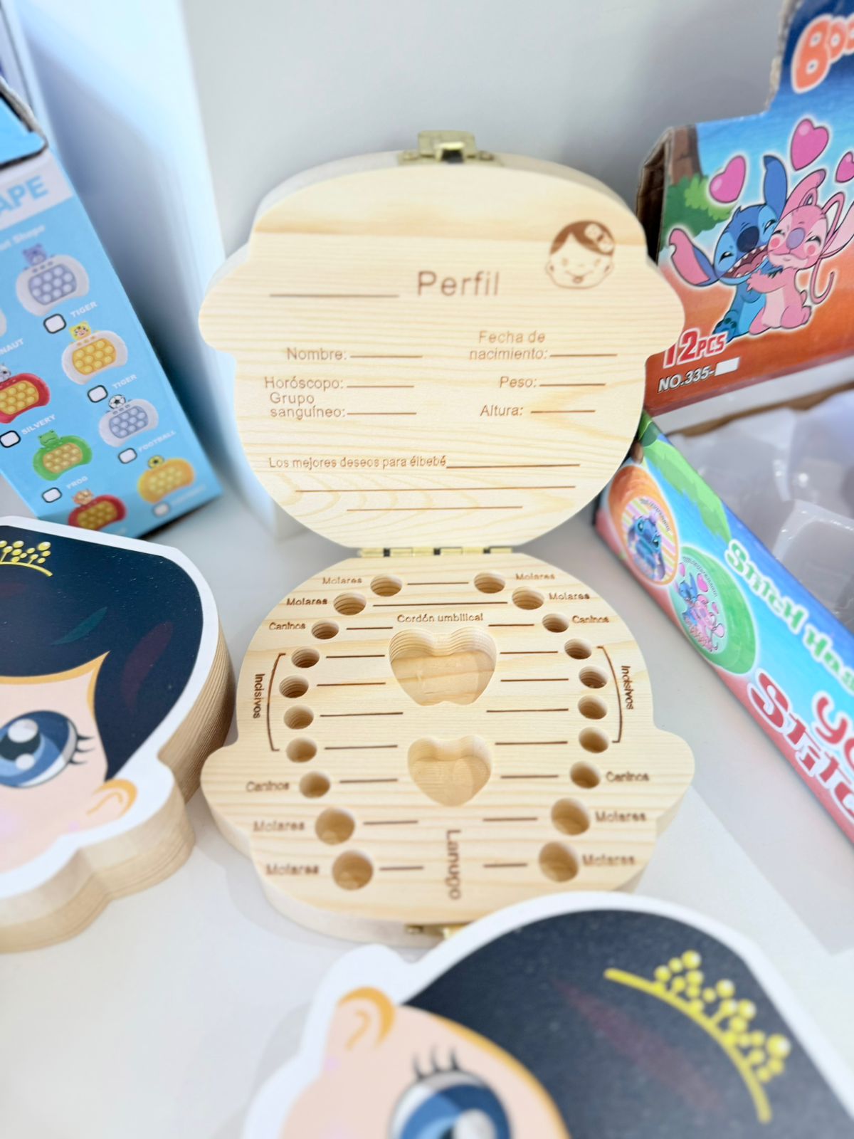 Juego apilable de madera, peces y abejitas
